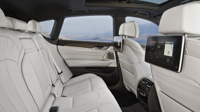Toplamda 5.091 milimetre uzunluğa sahip olan 6 Serisi Gran Turismo’nun boyutsal olarak en karakteristik farkı 21 milimetre daha aşağıda konumlandırılan yükseklik değeri. Bagaj kapağı da elden geçen araç yerini aldığı 5 Serisi GT’ye göre burada da 64 milimetre daha aşağıda konumlanıyor. Normal koşullarda 610 litrelik bir bagaj hacmi sunan 6 Serisi GT’de koltuklar pasif hale getirildiğinde bu değer 1.800 litreye kadar esneklik gösterebiliyor. Dış tasarımda olduğu gibi içeride de BMW’nin son teknolojisinin yer aldığı 6 Serisi GT’nin merkezinde iDrive ekranının büyüklüğü 10,25 inç olarak karşımıza çıkıyor. Sesli ve uzaktan hareketle kontrol edilebilen bu ekranın yanı sıra head-up display de sürücüye yardımcı parçalar arasında.
