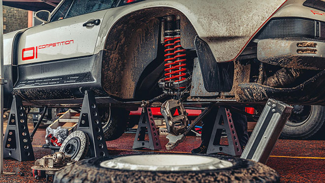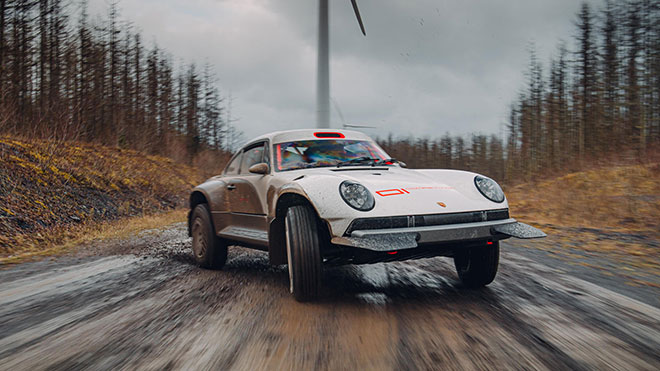 Singer firmasının son harikası direkt olarak “All-Terrain Competition Study” olarak isimlendiriliyor ve hava soğutmalı Porsche 911 üzerine kuruluyor. Modelin ismindeki “All-Terrain” takısından ve tasarımından anlayabileceğiz üzere bu makine her yol şartında gidebilmesi için tasarlanmış. Spesifik olarak ralliye özel modifiye edilen 911, gerçekten oldukça kışkırtıcı ve dikkat çekici görünüyor. Ralli konusunda uzman Richard Tuthill imzasını taşıdığı da aktarılan bu özel 911, çok güçlü süspansiyon sistemleriyle yerden oldukça yüksek ve araziye uygun devasa lastikler üzerinde oturuyor. İçerisinde güvenlik için roll cage yer alan araç, kolay değişim sunan karbon fiber gövde parçalarına da sahip. Spesifik olarak 1990 964 Porsche 911 üzerine kurulan makine, açıklamaya göre 3.6 litre altı silindir çift turbo motoruyla 450 beygir güç üretiyor ve bu gücünü her tekere aktarabiliyor. Sıralı şanzıman sistemi kullanılan 911, bizce özellikle kırmızı versiyonu ile göz alıcı görünüyor.