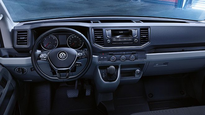 Yeni Crafter, baştan aşağı yenilenen dış tasarımıyla da artık çok daha keskin hatlar barındırırken bu tasarım dili kullanıcıya daha fazla ön ve yan görüş sağlıyor. Comfort Plus donanımında standart olarak sunulan LED farlar, yoğun ışıklı ortamlarda dahi aracın çok rahat fark edilmesini sağlayarak, yol güvenliğini artırıyor. Volkswagen’in bu versiyonda üzerinde durduğu önemli noktalardan birisi servotronik direksiyon. Şehir içinde kolay manevra yaparak rahat kullanım sağlayan bu yapı şehir içi mal sevkiyatında ve park etmede kolaylık sağlıyor. Direksiyon düşük hızlarda yumuşayarak kolay bir sürüş sağlarken, yüksek hızlarda da sertleşerek güvenliği artırıyor.