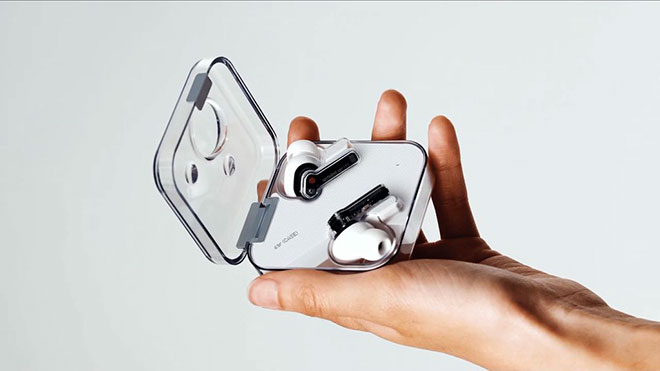 Sonunda tam olarak resmileşen kablosuz kulaklık, Qi kablosuz şarj destekli şeffaf bir taşıma haznesi ile geliyor ve kulaklıklar da belirli bir seviyede şeffaf tasarlanmış durumda.