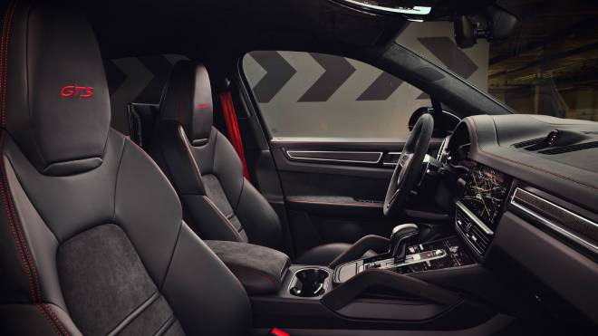 Cayenne GTS motor dinamiklerinin yanın sürüşüyle de sportifliğin karakterini üzerinde taşıyor. Araçta sürüş yüksekliğini 20 milimetre azaltan sportif bir süspansiyon sistemi standart olarak geliyor. Modeller ayrıca Porsche Aktif Süspansiyon Yönetim sistemi ve Torque Vectoring Plus ve Dinamik Şasi Kontrolü gibi elektronik destekleri de üzerinde taşıyor. GTS modelleri dışarıdan bakıldığında; 21 inç jantlar, kırmızı fren kaliperleri, egzoz sistemi gibi parçalarıyla farkını ortaya koyacak. Kokpitte de Alcantara döşeme, bolca alüminyum kaplama, sportif gösterge panelleri ve bol miktarda GTS logosu bizleri karşılıyor. Cayenne GTS serisi şu anda Almanya’da standart model için 114.087 eurodan başlayan fiyatlarla sunuluyor. Bu arkam coupe için 118.490 euro oalrak açıklandı.