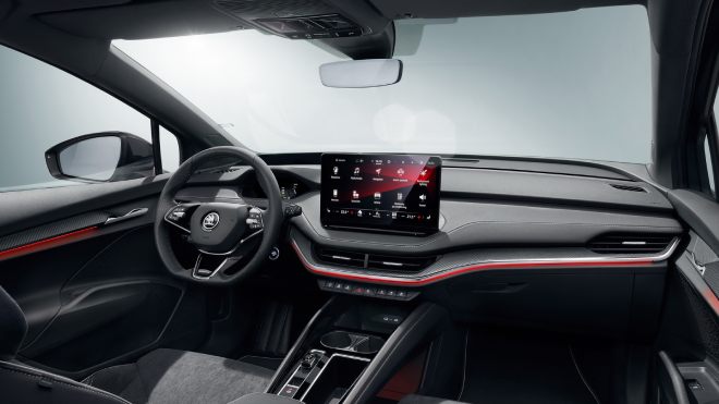 Sportif dinamiklerin hakim olduğu Skoda Enyaq Sportline iV, tasarım ve kokpitteki dokunuşlarıyla kullanıcıların dikkatini çekecek.