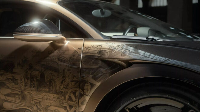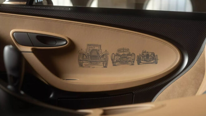 Satışa sunulan her Bugatti imzalı otomobil modeli özel ancak bazen daha özelleri de geliyor. İşte bunlardan birisi olan Bugatti Chiron Super Sport Golden Era, bir ultra zengin müşterinin isteği doğrultusunda hayat bulmuş. Aktarıldığı kadarıyla zenginler “Bugatti Sur Mesure” programı aracılığıyla otomobillerini istedikleri gibi kişiselleştirebiliyor ve bu program neredeyse sonsuz kişiselleştirme olanağı sunuyor. Adı verilmeyen bir Bugatti koleksiyoncusunun istekleri doğrultusunda bu programdan çıkarılan Golden Era, tamamlanması her açıdan iki yıl süren, bünyesindeki efsane Bugatti araçların yer aldığı çizimlere ise tam 400 saat harcanan bir arzu objesi olarak karşımızda yer alıyor. Aracının dışına ve içerisine özel kalemler aracılığıyla çok sayıda özel çizim yaptıran ve bu çizimler ile üreticinin 100 yılı aşan tarihini kutlamak isteyen koleksiyoner, aracında iki farklı ton üzerinden güzel bir görsel uyum yakalamayı başarmış görünüyor. Söylendiği kadarıyla aracın yolcu tarafında Type 41 Royale ve Type 57 SC Atlantic gibi ikonların yer aldığı 26 benzersiz çizim bulunurken, sürücü tarafında Bugatti’nin efsane tarihini belgeleyen 19 çizim yer alıyor.