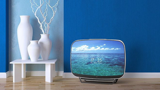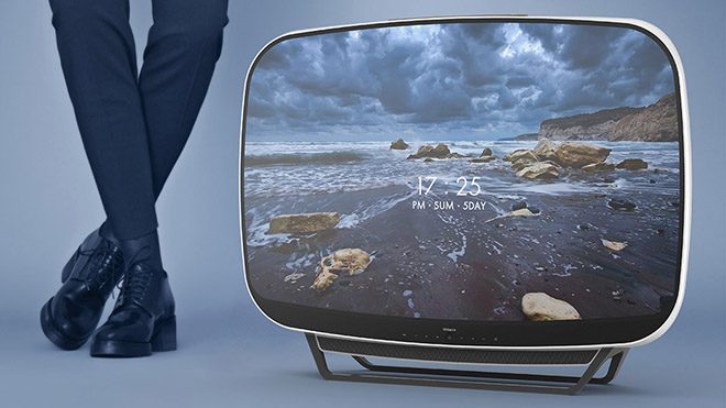 Şimdilik konsept tasarım olmakla kalan bu cihaz tüplü televizyonların tarzını benimsiyor. Özlenen havayı düz ekran teknolojisi ile bir araya getiriyor. Kenarları günümüzde kullanmaya alıştığımız ekranların aksine keskin olmayan bu televizyon ayaklık üzerinde duruyor. Şimdilik sadece beyaz renk seçeneği bulunan televizyonun kenar kısımlarında ise siyah tercih edilmiş. Böylece cihaz kapalıyken de ekran bütünlüğü bozulmuyor.