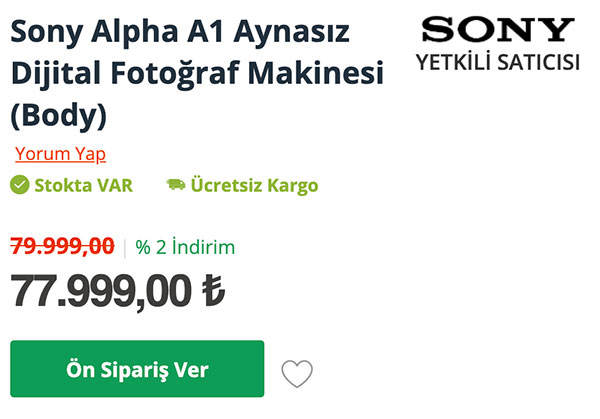 Japon teknoloji devi Sony‘nin yeni tam kamera aynasız fotoğraf makinesi Sony Alpha 1 için Türkiye’de ön sipariş başladı. Fiyat ise oldukça yüksek.