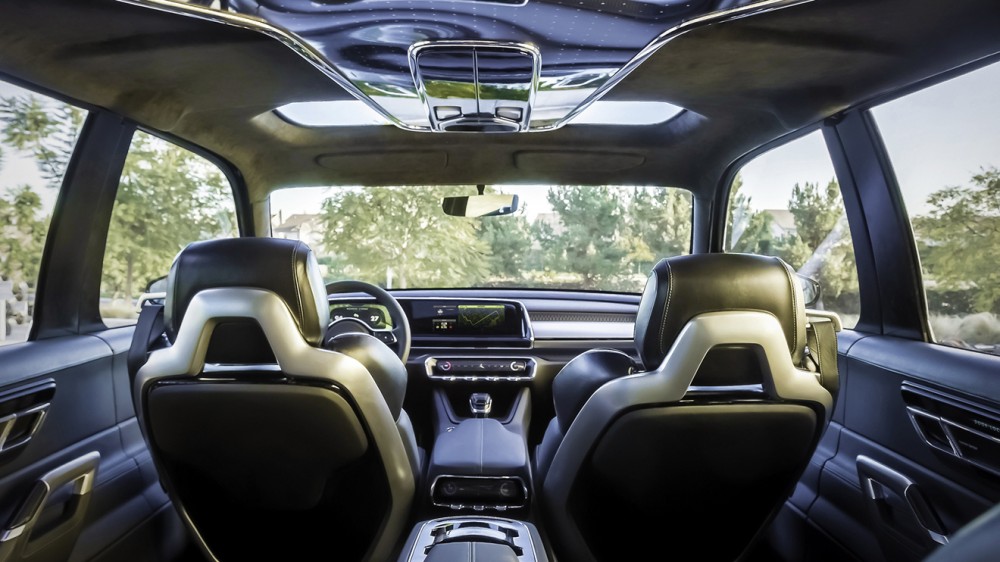 Önden baktığımızda klasik bir Amerikalı pick-up modellerini andıran Kia Telluride, kaslı ve agresif bir SUV görünümünde. Geniş ön panjuru, köşeli ön farları, ince ve dikey LED stopları ve krom detaylarıyla şıkır şıkır görünen otomobil, 22 inçlik jantlarının üstünde heybetli bir duruş sergiliyor. Telluride, etrafı LED panellerle donatılan sunroof’un altında geniş bir iç hacme sahip. Arka koltukların arasındaki konsol düzleştirilerek daha geniş bir alan elde ediliyor.