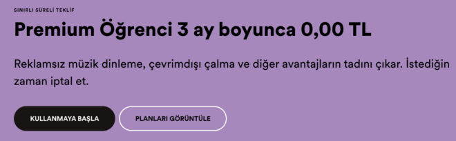 Spotify Premium bu sefer sadece öğrenciler için ilk alımda 3 ay ücretsiz (Sınırlı süre için) hale getirildi. Daha önce 3 ay ücretsiz verilen normal paketlerde ise şu an ilk alımda sadece 1 aylık ücretsiz kullanım hakkı tanınıyor. Spotify’ın bireysel olarak en düşük fiyatı 20,99 TL seviyesinde yer alıyor. Öğrenci ise 10,49 TL seviyesinde bulunuyor. Alandaki liderliğini koruyan Spotify bundan önce milyar kulübü haber ile gündeme gelmişti. Firma tarafından oluşturulan burada ulaşabileceğiniz en az 1 milyar dinlemeye ulaşan şarkılar listesinde şu an toplam 338 şarkı yer alıyor. Bu 2022’de toplam 128 yeni şarkı ile büyüyen listeye birden fazla şarkı dahil etmeyi başaran isimler de bulunuyor.