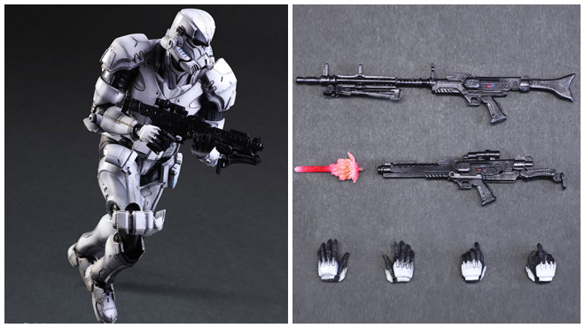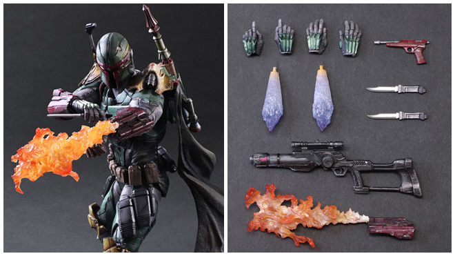 Daha önce Play Arts KAI atölyesinden çıkan Darth Vader figürünü görmüştük. Firma bu kez seriye iki önemli ismi daha dahil etti. Yeniden yorumlanan Boba Fett ve Stormtrooper figürleri Square Enix vitrinindeki yerini aldı. 14 adet eklem parçasıyla gelen figürler kendilerine özgü silahlarıyla geliyor. Haziran ayında satışa sunulacak olan Boba Fett ve Stormtrooper figürlerinin her ikisi de 100 dolar yurt dışı fiyat etiketine sahip.