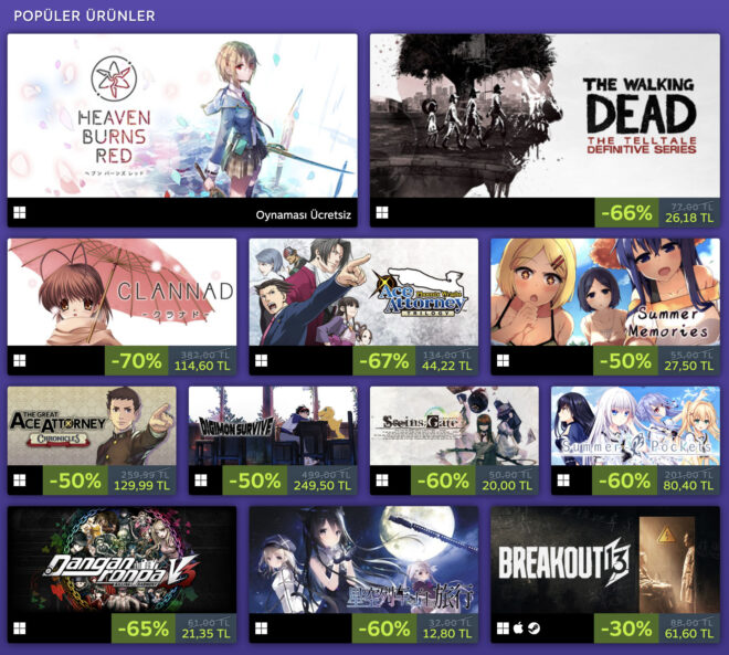Dünyanın en büyük oyun marketlerinden olan Steam, farklı kampanyalara devam ediyor. Bu sefer Steam Görsel Roman Festivali başladı.