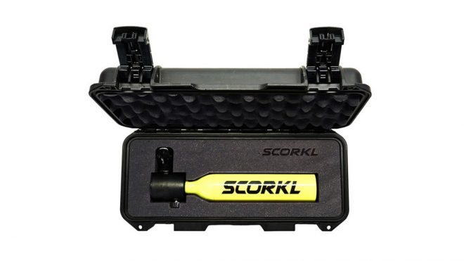 Kickstarter projesi olan Scorkl hemen hemen su şişesi boyutlarında, kompakt ve hafif bir mini dalış tüpü. Profesyonellerden ziyade daha çok hobi amaçlı, su altını keşfetmeye meraklı kullanıcılara hitap eden Scorkl, su altında 10 dakikaya kadar oksijen sağlıyor. El pompasıyla basit bir şekilde oksijenle doldurulabilen mini dalış tüpü tekrar tekrar kullanılabiliyor. Tabii bir dalış tankınız varsa onunla da basit bir şekilde doldurabilirsiniz. Ağız kısmı standart cihazlarla aynı olan Scorkl’un düzenleyicisi de her daim açık. Ağız kısmında bir de basınç göstergesi bulunan Scorkl’da ne kadar oksijenin kaldığı kullanım sırasında görüntülenebiliyor.