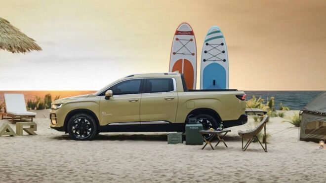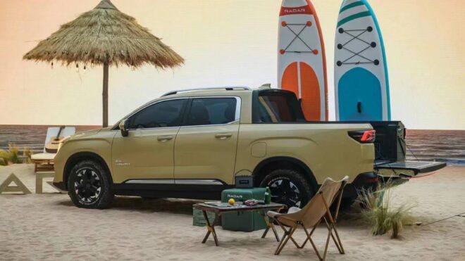 Geely’nin global SEA platformu üzerine inşa edilen Radar RD6, bir pickuptan beklenen dinamikleri sunabilecek özellikleri barındırıyor. Arka bölümünde Amerika pazarındaki tam boyutlu bir modele göre daha kompakt bir yükleme alanı barındıran model, kaputun altında motor olmaması etkisiyle burada da ekstra bir kullanım sunabiliyor. Modelle ilgili teknik tarafta ise şimdilik çok fazla rakamsal verilere girilmediğini görüyoruz. Bu noktada masada görünenler ise sunulan batarya ile maksimumda 600 kilometrelik menzil değerinin mümkün olduğuna işaret ediyor. Motor tarafında ise tek üniteyle 200 beygir, çift elektrik motoru ve 4×4 güç aktarımıyla 400 beygirlik değerler dikkat çekici.