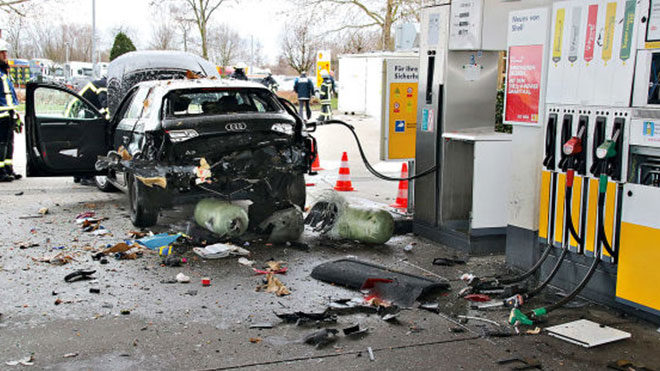 Volkswagen grubu içerisinde yer alan Audi, Skoda ve SEAT gibi üreticilerin hemen hepsinde sıkıştırılmış doğalgazlı (CNG) versiyonları görmek mümkün. Polo‘dan başlayıp grubunun en yeni üyesi olan Skoda Scala‘ya kadar oldukça geniş yelpazede sunulan bu araçlar nispeten daha ekonomik bir sürüşün temsilcisi niteliğinde. Lakin Türkiye’de de kullandığımız otogaz sistemlerinde olduğu gibi, CNG‘nin de beraberinde getirdiği bazı tehlikeler var. Bu tehlilelerin üzücü örneklerinden birisi Almanya’nın Baden şehrinde yaşandı. Audi A3 üzerinden karşımıza çıkan olayda, istasyondaki yakıt dolumu sırasında çok güçlü bir patlamanın meydana geldiğini görüyoruz. Olay yerinden gelen ilk görüntülerde de anlaşılacağı gibi oldukça şiddetli olan bu patlamanın 35 metrelik bir alanı etkilediği kaynaklara yansıyor.