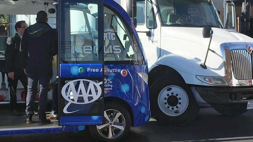 Sürücüsüz servis aracı ilk iş gününde kaza yaptı [Video]