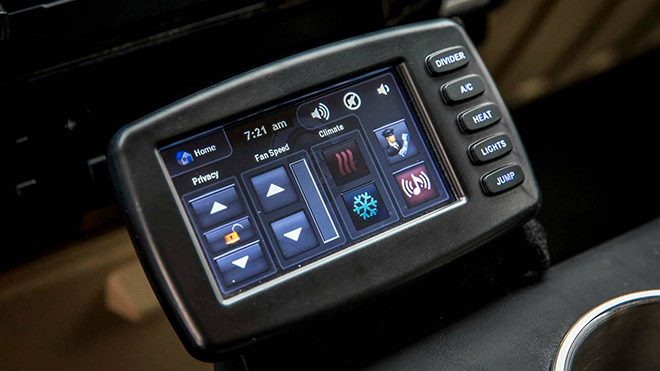 2018 model yılıyla birlikte Executive Edition adı verilen yeni bir donanım seçeneğine kavuşan Rhino GX’in iç dünyası lüks konusunda yeni bir deneyimin kapılarını aralıyor. Gerçek deri, ahşap ve alüminyum malzemelerin kullanıldığı bu bölümde boyutu 40 inç olan devasa bir televizyon, uydu alıcısı, elektrikli ve ısıtmalı koltuklar, ambiyans aydınlanması ve halı zemin kaplaması gibi detaylar karşımıza çıkan egzotik parçalardan. 2017 versiyonu 249.000 dolarlık etiket fiyatıyla satılan Rhino GX’in henüz açıklanmayan fiyatının hatırı sayılır oranda artması bekleniyor.