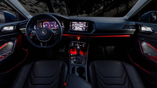 2019 Volkswagen Jetta’da herkes gibi bizim de ilk olarak gözümüz kokpitte yapılan yeniliklerle ilgili detaylara gitti. Lakin bunlardan önce bizleri dışarıdan baktığımızda gerek tasarım gerekse ebat olarak nasıl bir aracın beklediğini anlamamızda fayda var. Jetta’nın ebatlarına baktığımız zaman hatırı sayılır iyileştirmeler yapıldığını söyleyebiliyoruz. Toplamda; uzunluğu 43 milimetre artırılarak 4.702 milimetreye, aks mesafesi 35 milimetre artırılan 2.686 milimetreye, genişliği 21 milimetre artırılarak 1.799 milimetreye ve yüksekliği 6 milimetre artırılarak 1.459 milimetreye getirilen yeni jenerasyon görüldüğü gibi her açıdan bir adım ileriye gitmiş durumda. Bunun yanı sıra ön bölümden 10 milimetre kısaltılıp arka kısmı 18 milimetre uzatılan araçta bu sayede daha sportif karakter yaratılmaya çalışılmış. Artan ebatlar doğrultusunda iç yaşam alanında gerek diz gerekse baş mesafesi de iyileştirilen Jetta’da ilginç bir şekilde bagaj kapasitesi bir önceki jenerasyonla aynı olacak şekilde 510 litrede tutulmuş.