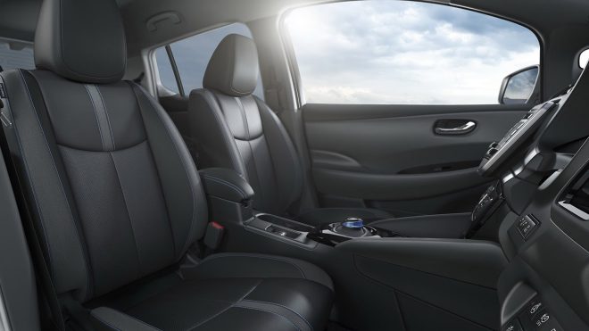 Nissan’ın Qashqai, X-Trail ve Pulsar gibi modellerinde görmeye alışık olduğumuz “V” formlu ızgara tasarımının korunduğu Leaf’te ışıklandırma grubu da benzerlikten nasibini alıyor. Yerini aldığı jenerasyonla en büyük farkı oluşturan bölümlerden birisi olan dış kısımda ön ışıklandırmalar yatay çizgi formunda yer alırken arka taraftaki ışıklandırma da bu çizgiler dikey forma bürünmüş şekilde karşımıza çıkıyor. Nissan’ın tamamıyla baştan yorumladığı ikinci en büyük bölümse Leaf’in kokpiti. Merkezinde boyutu 7 inç olan Apple CarPlay destekli multimedya ekranın kullanıldığı konsolda direksiyon ve sürücü göstergeleri de artık çok daha modern bir yapıya büründürülmüş.