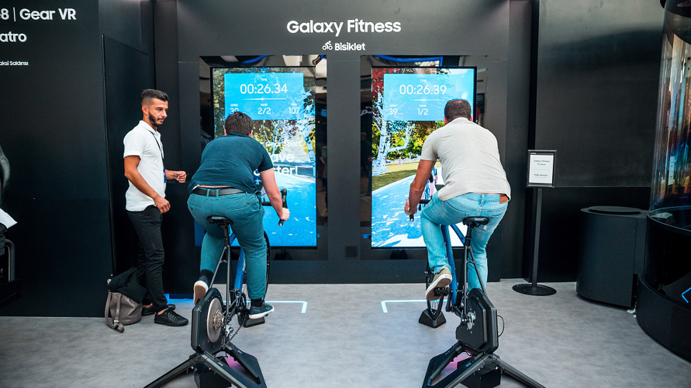 Gear VR deneyimlemek isteyen kullanıcıları ise 4D tiyatro keyfini yaşayabilecekleri bir alan bekliyor. Sağlıklı yaşam alanındaysa Gear Sport, sporseverler için yeteneklerini sergiliyor. Galaxy Fitness alanındaki bisikletlerde ziyaretçiler nabızlarını ve yaktıkları kalori miktarını Gear Sport’un ekranından anlık olarak takip edebiliyor.