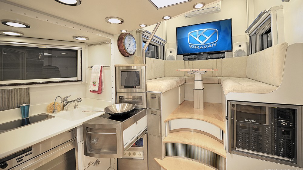 Bran Ferren ve ekibi Applied Minds tarafından yaklaşık beş yıldır geliştirilen ve geliştirilmeye devam eden KiraVan’da yok yok. Lazer haritalama sistemi, gelişmiş navigasyon, radar, sensör ve uydu sistemleri KiraVan’ın dikkat çekici donanımları arasında. Tasarım ve mühendisliğiyle de kendine hayran bırakan karavan, mutfağından oturma odasına, tam donanımlı kokpitinden motosiklet veya bisiklet koymak için geliştirilen özel kaldıraç sistemine kadar büyüleyiciyi detaylara sahip.