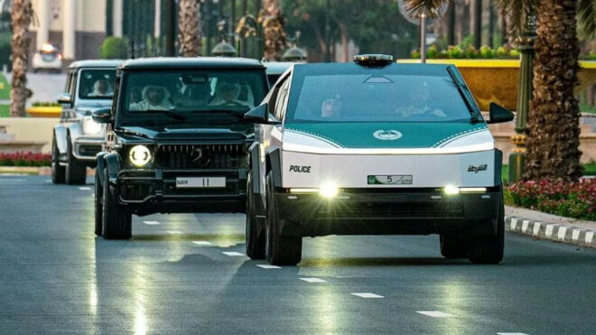 Çok sayıda süper otomobilin polis aracı haline getirildiği Dubai’de bu sefer beyaz renkli bir Tesla Cybertruck polis aracı olarak göreve başladı. Beyaz haliyle “düşük çözünürlüklü bir balinaya” benzetilen araçtan, şu an Dubai polisinde sadece bir örneğin olduğu belirtiliyor. Tesla Cybertruck daha önce de bir polis aracı haline getirilmişti. O aracın arkasında Unplugged Performance UP.FIT firması yer alıyordu. Acil durum ışıkları, güçlü bir siren ve diğer gerekli polis donanımlarıyla donatılan aracın, yapılan açıklamaya göre yıl sonunda yollara çıkarılması planlanıyor. Hazırladıkları araca ABD’deki polis birimlerinden şimdiden ciddi bir talep olduğunu belirten Unplugged Performance, araç için Patrol, Admin ve Tactical adı verilen üç farklı sürüm sunacak. Bu sürümlerin her biri 547 km menzil ve 2.6 saniyelik 0-100 km/s hızlanma süresine sahip olacak.
