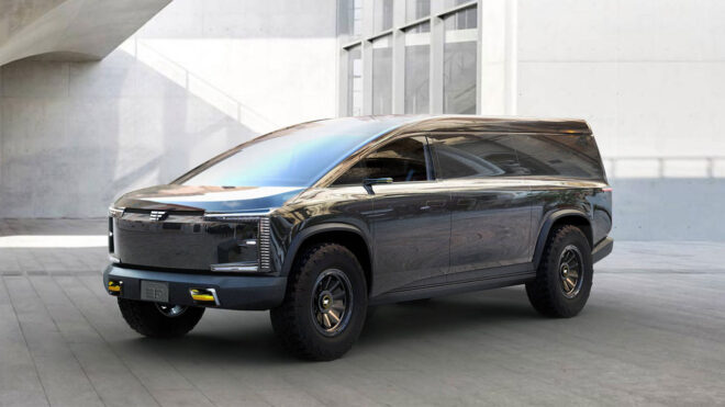 Tasarımsal olarak Tesla Cybertruck’ı akla getiren ancak yuvarlatılmış hatlarıyla daha modern duran elektrikli geleceğin araçları, fotoğraflarda da görebileceğiniz üzere gerçekten çok büyük gövdeler üzerine kuruluyorlar.
