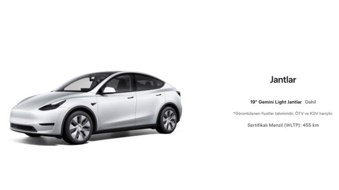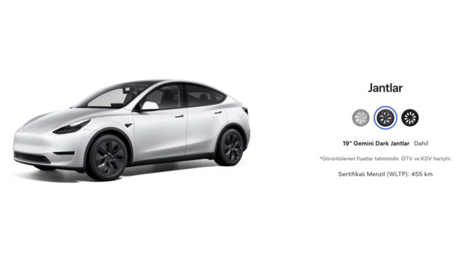 Güzel bir adım atıldı. 1,8 milyon TL’lik Tesla Model Y SR’ın 19 inç Gemini jantları Türkiye’de artık siyah/koyu renkte satılıyor.