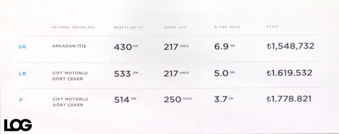 Açılan resmi sayfa sayesinde opsiyon fiyatları da gözler önüne seriliyor. Firma Model Y’nin Solid Black rengi için 18 bin TL, Quicksilver rengi için 51 bin TL, Deep Blue Metallic rengi için 27 bin TL, Midnight Cherry Red rengi için 55 bin TL ekstra ödeme alıyor. Tüketicilerin şok şık duran 20 inç jantlar için 38 bin TL vermesi gerekiyor. Çeki demirini 23 bin TL‘ye satan Tesla, “siyah-beyaz” iç mekân için 20 bin TL istiyor. Geliştirilmiş otomatik pilot için 66 bin TL, Full Self-Driving Kabiliyeti içinse tam 131 bin TL fiyat açıklanıyor. En temel Model Y için Türkiye’de ₺441.595 ÖTV ve ₺238.461 KDV alınıyor. Firma Model Y için Türkiye’de “İade Edilemeyen Sipariş Ücreti” olarak 10 bin TL alıyor ve bu konuda şu uyarıyı yapıyor: “Görüntülenen fiyatlar tahminidir. Kesin fiyat teslimata yakın bir zamanda sunulacaktır.” Bu açıdan fiyatların son aşamada ciddi şekilde değişmesi ve olası bir aşırı yükselme nedeniyle almaktan vazgeçerseniz 10 bin TL’nizin yanma ihtimali bulunuyor.