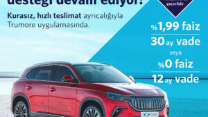Togg bugün X hesabı üzerinden şu açıklamayı geçti: “Togg T10X’e özel 800.000 TL’lik kredi kampanyamıza gösterdiğiniz ilgi için teşekkür ederiz. Yoğun isteğiniz üzerine, sadece T10X V1 Uzun Menzil seçeneğinde geçerli olmak üzere finansman desteğimizi uzatıyoruz. Hemen Trumore uygulamasını indirin, 26 Mayıs Pazar gün sonuna kadar siparişinizi oluşturun; kurasız, hızlı teslimatla T10X’e sahip olun. ” Bu konuda gelen son açıklamada şunlar aktarılmıştı: “Türkiye’nin mobilite alanında hizmet veren küresel teknoloji markası Togg, T10X’i farklı finansman avantajlarıyla kullanıcılarla buluşturmaya devam ediyor. Sınırlı sayıda T10X için geçerli olan kampanya kapsamında anlaşmalı bankalarda 800 bin TL krediye %0 faiz ve 12 ay vade ödeme seçeneği bulunuyor. Aynı zamanda dileyen kullanıcılar, 800 bin TL krediye %1,99 faiz oranıyla 30 ay vade seçeneğiyle de T10X sahibi olabiliyor. Kullanıcılar, T10X’in tüm versiyonlarında geçerli olan kampanyaya 20 Mayıs Pazartesi gün sonuna kadar katılabiliyor.
