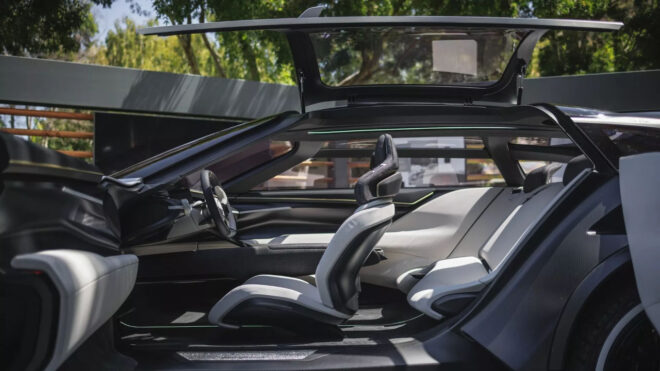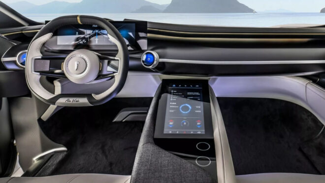 Fiziksel tuşların olmadığı yaşam alanının merkezinde, üzerinde ekran yer alan döndürülebilir bir vites sistemi karşımıza çıkıyor. Koltukları bir konsept olduğundan inanılmaz görünen Pura Vision, arkadaki yolcularına bir şişe ile iki bardağın rahatlıkla konulabileceği tepsi alanı sunuyor. Otomobil dünyasında öne çıkmayı bilen Pininfarina Pura Vision sadece bilgisayar ortamında sergilenen bir araç da olmayacak. Yapılan açıklamaya göre konsept ay sonunda düzenlenecek Monterey Car Week kapsamında gerçek olarak görülebilecek.