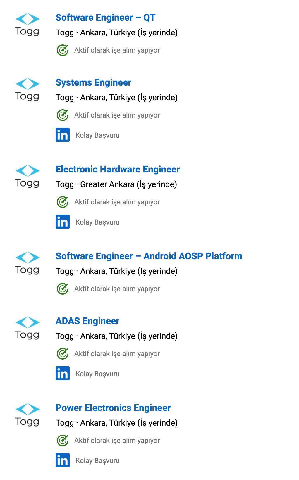 Yerli otomobil projesinin arkasında yer alan Togg, birçok farklı alanda ve bölgede işe alımlar yapmayı aktif olarak sürdürüyor.