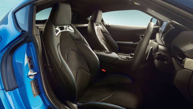 İçeriye baktığımızda, Horizon Blue Edition için Alcantara ve siyah hakiki deri ile kaplanmış spor koltukların yanı sıra direksiyon simidi, gösterge paneli ve kapı panelleri üzerindeki kabin boyunca mavi dikişler ön plana çıkıyor. Toplamda 27 adet üretilecek olan GR Supra RZ’de de dış taraftaki farklarla birlikte kokpitte de benzer dinamiklerin sunulması bekleniyor. Her iki modelde turboşarjlı 3.0 litrelikli motorun yüzde 14’lük güç artışı yapılmış versiyonları karşımıza çıkıyor. Bu geliştirmelerle birlikte motor 387 PS güç üreterek yola devam edecek. Supra’nın bu versiyonları için motor dışında, ön ve arka süspansiyonlarda da sürüş dinamiklerinde daha sportif bir deneyime odaklanan değişiklikler yer alacak. GR Supra RZ Horizon Blue Edition yaklaşık 69.500 dolark, GR Supra RZ ise 71.830 dolardan alıcı bulacak.