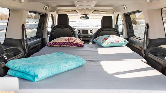 Marka içerisine 2013 yılında dahil olan Proace, beş veya yedi kişilik yolcu taşıma kapasitesine sahip olan ve sadece Avrupa’da sunulan bir model olarak yollara çıkmaya başladı. Ticari kimliğinin yanı sıra, tipik bir kalabalık aile modeli olarak uzun yolculuklar için de uygun bir model olan Proace üzerinde biraz kafa yoran Toyota, sonucunda ortaya iki kişinin rahatlıkla konaklayabileceği bir özel versiyonu meraklılarıyla buluşturuyor. Proace’in; Compact, L1 ve L2 versiyonları üzerinden siparişe açık olan Camper versiyonunda, katlanabilir çift kişilik yatak ikinci koltuk sırasının yerini alıyor. Yatak dışında kullanıcılar dilerlerse 99 euro karşılığıda masa ve iki sandalyeden oluşan seti, 2.790 euro karşılığında özel raf setini, 1.600 euro karşılığında 2,4m x 1,4m ebatlarında çadır setini ve 299 euro karşılığında güneşten koruyucu tenteleri opsiyonel olarak satın alabiliyor. Başlangıç fiyatı 35.300 euro olarak açıklanan ProAce Verso Camper’ın ekstra donanımlar eklendiği zamanki fiyatı yaklaşık 41.000 euro‘ya kadar değişiklik gösterebiliyor.