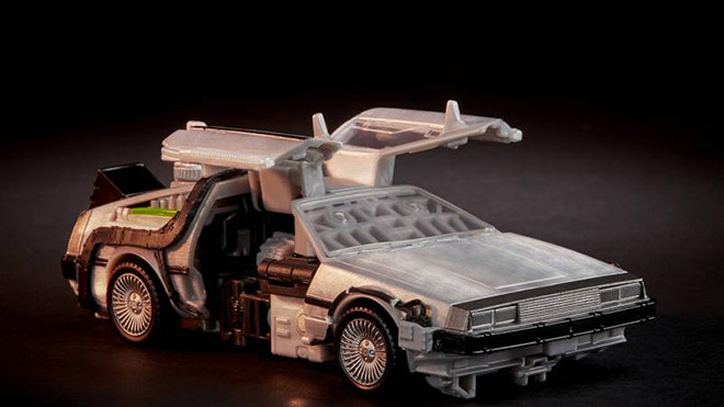 Zaman Makinesi modunda, aracın tekerlekleri “filmin sonunda görüldüğü gibi havada asılı kalma etkisi yaratmak için” dikeyden yataya dönüyor. Oyuncakta aynı zamanda açılan martı kanadı kapıları da bulunuyor. 17 adımda Zaman Makinesi moduna dönüşebilen oyuncak Doc Brown tarzı gözlükler ve zaman devreleri gibi parçaları da bünyesinde barındırıyor. Oyuncağa yakından bakıldığında oyuncağın DMC marka araçla aynı olmadığı görülüyor. Wallmart mağazalarında satışa sunulacağı açıklanan oyuncağın daha sonrasında diğer mağazalarda da satışa sunulacağı belirtiliyor. Dünya genelinde sadece 1.985 adet üretileceği belirtilen oyuncağın satış fiyatı ise henüz belli değil. Oyuncağın 1985 adet üretilmesinin sebebi ise ilk Transformers filminin 3 Temmuz 1985’de yayınlanmış olması.