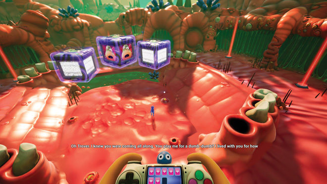 Hemen her oyun mizahı eser miktarda kullanmaya gayret gösterir. En ciddi oyunların bile beklenmedik anda gülümsetmeye ihtiyacı olur tansiyonu düşürmek için. Dark Souls’da bulduğunuz bir yüzüğün açıklamasını okurken gülümseyebilirsiniz örneğin veya Divinity: Original Sin’de kahkahalar atmanıza neden olabilecek absürt görevler karşınıza çıkabilir. Ancak ana türü olarak komediyi kullanan oyun sayısı çok fazla değil. Elbette sık sık güldüren ve eğlendiren pek çok oyun var. Lakin bunlar genellikle Goat Simulator veya Surgeon Simulator gibi yapabileceğiniz saçmalıklarla sizi güldürmeyi seçen oyunlar oluyor. Diyaloglarının barındırdığı kaliteli mizahla oyuncuya kahkaha attırabilen yapım az. Monkey Island gibi 90’lar macera oyunlarında veya Portal, Stanley Parable ve South Park: Stick of Truth gibi birkaç günümüz oyununda bu sağlam mizahı görebiliyoruz. Trover Saves the Universe ise bu ikisinin mükemmel karışımı, tıpkı Rick and Morty’de olduğu gibi.