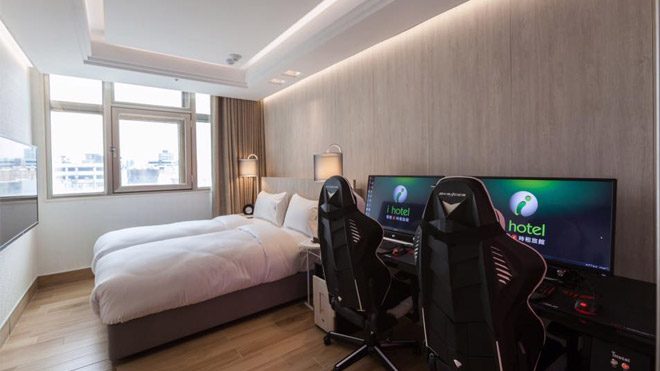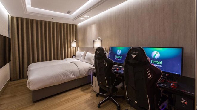Tayvan’da bulunan i hotel, oyun tutkunları için adeta cennet. Otel odalarında ikişer tane tam teşekküllü oyun bilgisayarı yer alıyor. Tabii ki konfor da önemli. DXRacer’ın oyuncu koltuğuna yer veren otelde evinizdekinden daha lüks bir oyun deneyimi yaşamanız işten bile değil. 32 inç monitörlerle donatılan odalarda yer alan bilgisayarlar ise Asus imzalı.
