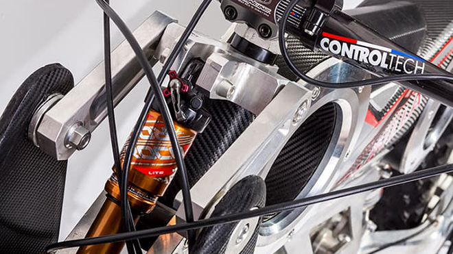 Heybetli görüntüsüyle bir bisikletten çok motosikleti andıran Carbon, sağlam ve şık şasi tasarımından lastiklerine, aktarma organlarından fren kaliperlerine kadar bir bisikletten çok daha fazlası. Geniş ve tırtıklı lastikleri ve tel jantlarıyla arazi duruşu sergileyen Carbon, tuhaf şasi mimarisiyle her yola gelebileceğini gösteriyor. 400 mm çapındaki devasa Magura ön fren diskleri, 8 vitesli Shimano Nexus takımı, hız, mesafe ve pil durumunu gösteren LED ekranı Carbon’un öne çıkan detaylarından.