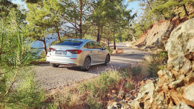 Düzenlenen özel etkinlik kapsamında kendisiyle 1 gün geçirme şansına eriştiğimiz 11. nesil Civic ile yaklaşık 150 kilometrelik sürüşü geride bıraktık. Bu sürüş tanışma niteliğinde olsa da, aracın geliştirmelerini anlama konusunda zihinlerimizdeki fikirlerin oluşmasına yardımcı oldu. Önceki neslin en önemli eksiklerinden birisi olan yalıtım konusuna özellikle çalışıldığını belirten Honda’nın bu geliştirmelerini 150 kilometrelik sürüşte hissettiğimizi gönül rahatlığıyla söyleyebiliriz. Civic artık 140-150 km/s’lik hızlarda bile rahatsız edici olarak değerlendiremeyeceğimiz yaşam alanı var.