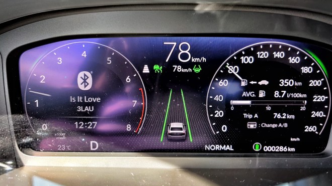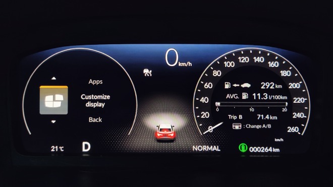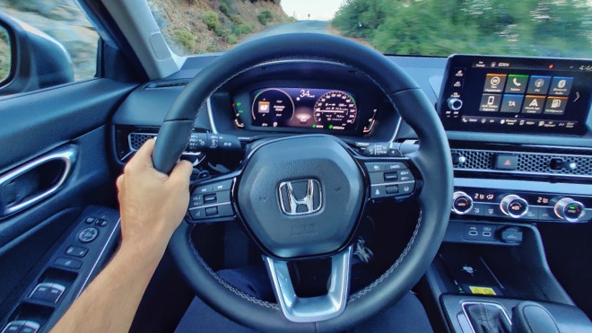 Executive+ versiyonun benzinli motor seçeneğinde ise Civic’te ilk kez sunulan 10,2 inçlik yüksek çözünürlüklü tam renkli LCD ekranın grafik detaylarındaki zenginlik şaşırtıcı derecede başarılı. Otomobilin farlarını aktif hale getirdiği anda ekrandaki araç ikonunun da aktif şekilde ön bölümünü aydınlatması, fren yapıldığında da arka stopların efektle aydınlatılması detaylara verilen özeni gösteriyor. Adaptif hız sabitleyicinin aktif olduğu senaryodaki yol işleyişinin gösterildiği grafikler de premium otomobil seviyesinde akıcı ve tatmin edici.
