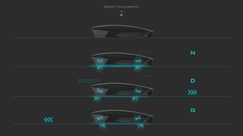 Konsept 2076 projesinde hiçbir şekilde motor sistemi kullanılmıyor. Aracın ilerlemesi tamamen manyetik alan etkisiyle (maglev/magnetic levitation) sağlanıyor. Araç içine erişim ise Touch ID (parmak izi tanıma sistemi) ile sağlanıyor. Yakın gelecekte bu türde tasarımları yollarda görmek pek mümkün olmasa da hızla gelişmekte olan teknoloji ile beraber uzun vadede geleceğin ulaşım araçlarının böyle olmaması için hiçbir neden yok.