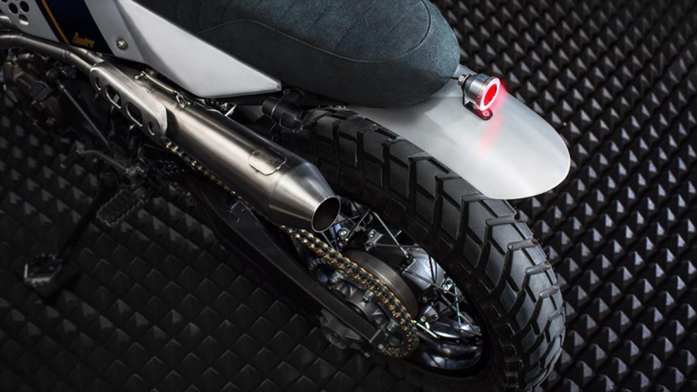 Yamaha’nın Yard Built projesi kapsamında Bunker garajına giren XSR700, Faster Sons felsefesini yansıtmaya devam etmekle birlikte, garajdan çok daha havalı bir şekilde çıktı. Can ve Mert Uzer kardeşler, XSR700’ün hem sokak hem de arazi kullanımını geliştirmek için motosikleti ince dokunuşlarla baştan aşağı yeniledi. Öncelikle değişen yol koşullarına uygun olarak dik bir sürüş pozisyonu tercih eden ikili, motosikletin arazi performansını artırmak adına susturucunun yerini değiştirerek orta sehpanın yüksekliğini de 14 cm’den 20,5 cm’ye yükseltti. Egzoz tasarımı, egzoz manifoltları, susturucu, Akrapovic katalitik dönüştürücü, MT-09 Tracer’dan alınan ön çatal, 19’a 17 inç çapında tel jantlar değiştirilen diğer parçalar arasında.