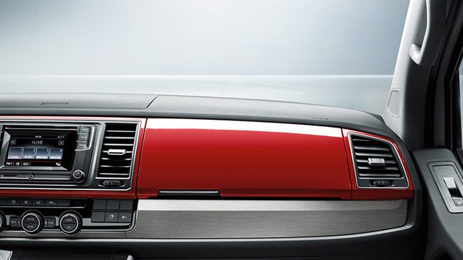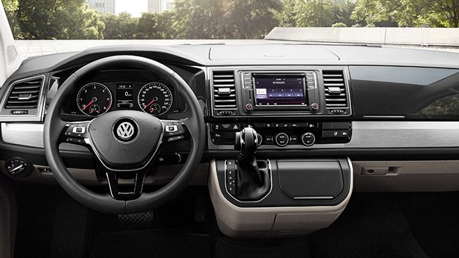 Caravelle, ön konsolda kullanılan kaliteli malzeme ve üst seviye işçilikle ayrıcalıklı bir atmosfer yaratıyor. Ön konsolda bulunan saklama gözleri sayesinde evraklar, tablet, akıllı telefon ve diğer önemli aksesuarlar rahat bir şekilde muhafaza edilebiliyor. Trendline ve Comfortline donanımında yer alan konsolda, MP3 ve WMA uyumlu CD çalar, harici SD kart/AUX-IN/USB destekli renkli 5 inç dokunmatik ekran sunuluyor. Highline donanım seviyesinde ise SD kart, AUX-IN, USB ve Bluetooth desteğine sahip 6,33 inç dokunmatik renkli ekrana sahip Composition Media radyo sistemi en temel farkı yaratmakta. Ayrıca geri görüş kamerası da, Composition Media radyo sisteminin ekranından görülebiliyor. Deri kapl direksiyon simidi ve yenilenen elektronik klima da bu anlamda fark yaratan detaylardan.