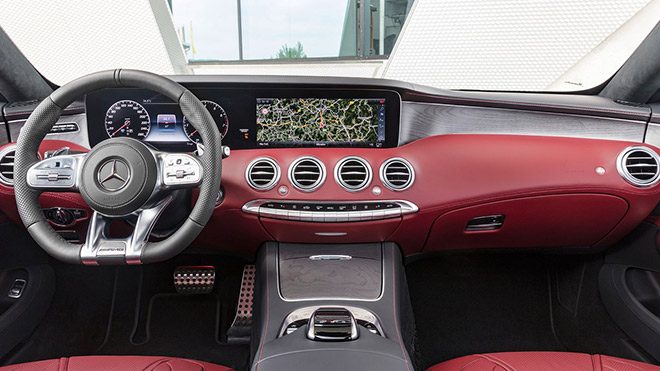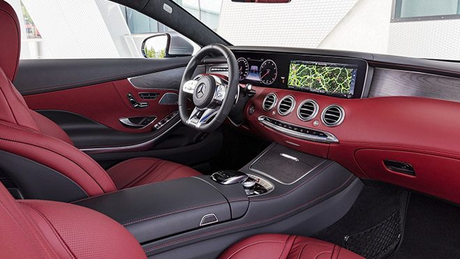 Kokpit bölümünde standart S-Serisi ile benzer bir yapının hakim olduğu coupe’nin konsol merkezinde artık alt modellere de kaydırılmaya başlanan 12,3 inç‘lik ekranlar yer alıyor. Yeni model yılıyla birlikte direksiyonunda da güncellemelerin yapıldığı araçta multimedya sisteminin yanı sıra hız sabitleme sistemini de direksiyon üzerindeki dokunmatik bölümden kontrol etmek artık mümkün. Bugüne kadar bilgi ve eğlence sistemini kumanda eden sesli komut sistemi de daha da geliştirilerek artık araç fonksiyonlarını da kumanda etme imkânı sunuyor. Sürücü; iklimlendirme, koltuk ısıtması/havalandırması, aydınlatma (ambiyans, okuma lambası, arka kısım lambası), koltukların masaj fonksiyonu ve head-up- display gibi donanımları sesli komutla kumanda edebiliyor. Sistem, dil seçeneği ve donanım seviyesine bağlı olarak sistem 450’ye kadar sözlü komutu destekliyor.