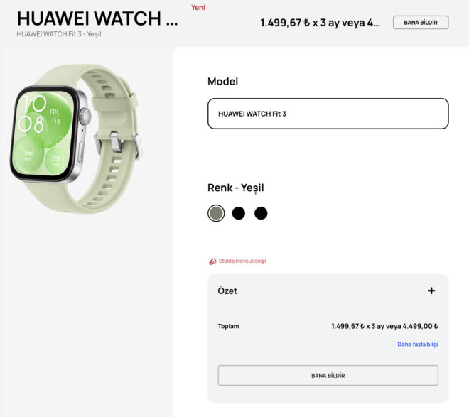 Türkiye’de 4.499 TL’ye satılacak Huawei Watch Fit 3 resmi olarak tanıtıldı