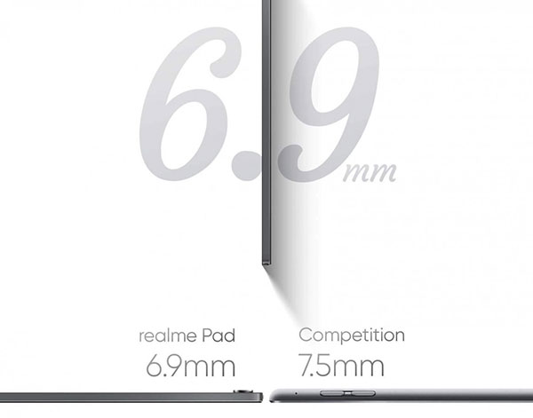 9 Eylül tarihinde resmileşecek Realme Pad, arkasında ve önünde 8 megapiksel çözünürlük taşıyan birer kamera taşıyor. Güç butonu üste, ses açma kapatma butonları ise yan üste konumlandırılan tablet, bağlantı için USB-C kullanıyor.