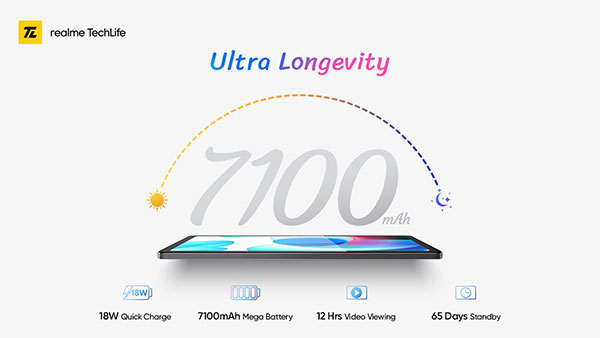 Gücünü MediaTek imzalı Helio G80 işlemciden ve 4 GB ya da 6 GB RAM’den alan 64 GB depolamalı tablet, yüzde 100 kesin olarak 7.100 mAh pil üzerine kuruluyor. 18W hızlı şarj desteğine sahip bu pil, firmaya göre 65 gün bekleme ve 12 saat video izleme süresi sunuyor.