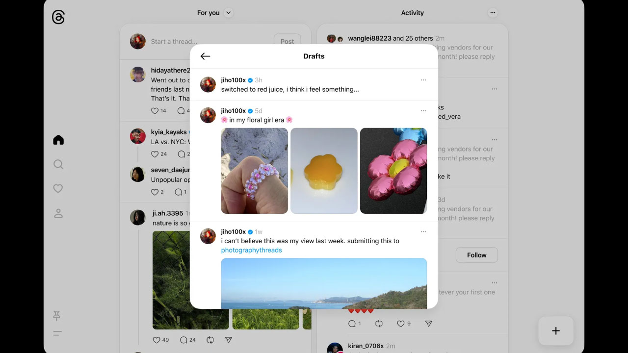 Daha sonra bir açıklama yapan Instagram’ın başındaki isim Adam Mosseri ise Threads’in 200 milyon kullanıcı sayısını geride bıraktığını duyurmuştu. Hızlı olmasa da büyümeye devam eden platform, bugün test edilmeye başlanan yeni özelliklerle gündemde yer alıyor. X rakibi platform için ilk olarak birden fazla paylaşımı taslak olarak kaydetme özelliği test ediliyor. Şu anda kişilerin sadece tek bir taslak kaydetmesine imkan tanıyan şirket, yakında bunu tam 100 taslağa kadar çıkartacak. Buna ek olarak kullanıcılar yakında sabitlenmiş sütunları yeniden sıralayarak Threads ana sayfalarını daha iyi bir şekilde özelleştirebilecek. Ayrıca yeni analitik sayfasıyla (Insights altında) hesabın durumu ve özellikle de paylaşılan içeriklerin gösterdiği performans hakkında çok daha detaylı bilgiler verilecek.