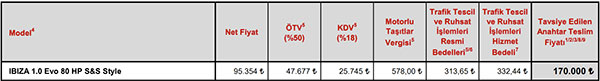 ÖTV oranının daha düşük olduğu otomobil modelleri de var. Örneğin 1 litre motorlu 2020 IBIZA’dan yüzde 80 değil yüzde 50 ÖTV alınıyor. Güncel kur üzerinden net fiyatı 95 bin TL olan araca yüzde 50 ÖTV’yle beraber 47 bin TL‘lik bir yük biniyor. Buna ÖTV’nin üzerine eklenen yüzde 18 KDV yani 25 bin TL daha geliyor. Diğer yasal ücretler ve MTV ile beraber aracın tavsiye edilen anahtar teslim satış fiyatı tam 170 bin TL‘ye yükseliyor. Bu araçtan ÖTV alınmasaydı satış fiyatı yüzde 18 KDV üzerinden yaklaşık 113 bin TL olacaktı.