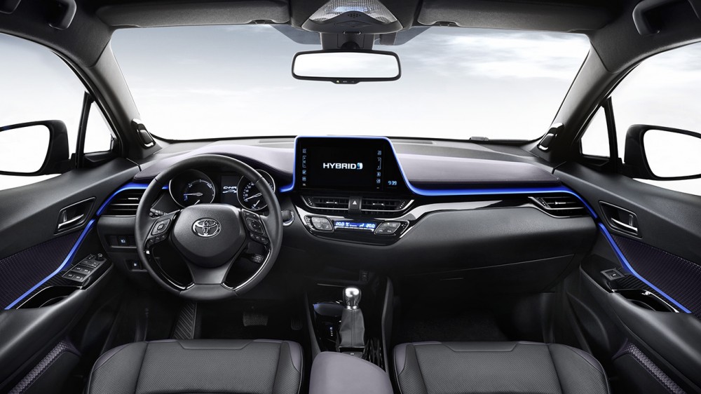 Paris’te sergilenen konsepti çok az törpüleyen Toyota, hala fazlasıyla iddialı, tuhaf, uçuk, agresif bir otomobille karşımızda. Peki dışarıdaki curcuna iç mekanda da devam ediyor mu? Nispeten evet. Kapı panellerinden başlayarak, konsola doğru kıvrılan, bilgi ekranını saran mavi şerit epey dikkat çekici. Yapay ambiyans ışığı yaratan bu şeridin etrafında daha sade bir gösterge paneli ve 8 inçlik multimedya ekranı yer alıyor.