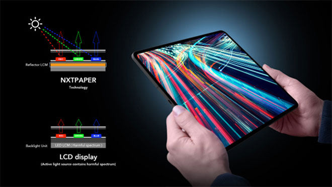 Örneğin firma “waterfall” ekrana yani aşırı kavisli kenarlara sahip yukarıda görebileceğiniz prototip bir telefon gösterdi. Buna ek olarak şirketten iki adet OLED ekrana sahip, çok ince yapılı bir akıllı gözlük konsepti de karşımıza çıktı. TCL ayrıca NXTPAPER ekran teknolojisini de görücüye çıkardı. Gözleri LCD ekranlara göre çok iyi koruyan teknoloji, kağıt benzeri bir deneyim getiriyor ve kendi ışığına ihtiyaç duymuyor. Burada ortamdaki ışık kullanılıyor ve E Ink benzeri ancak çok daha iyi bir deneyim elde edilebiliyor deniyor. Bu teknoloji de henüz prototip aşamasında yer alıyor.