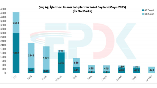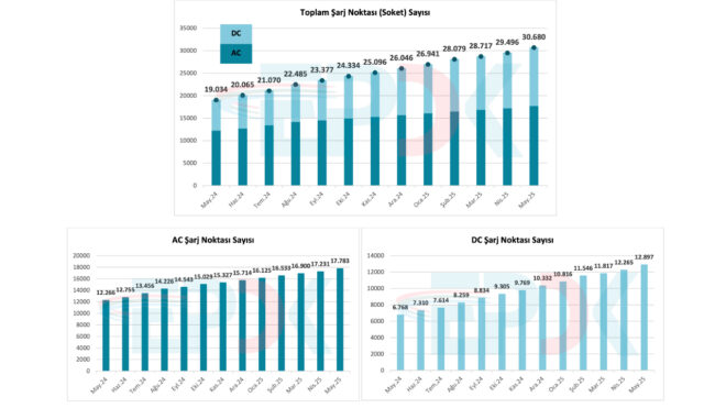 Enerji Piyasası Düzenleme Kurumu’nun buradaki güncel raporuna göre, mayıs ayı itibarıyla Türkiye’deki elektrikli araç sayısı 247.344’e çıktı. Türkiye’deki elektrikli araç şarj noktaları ise mayıs ayında 30.680’e kadar ulaştı. Verilere göre Türkiye’de mayıs ayında toplam 17.783 adet AC şarj noktası ve 12.897 adet DC şarj noktasıyla hizmet verildi. Şarj soketi sayısında liderlik koltuğunda mayıs ayında 4.556 sokete ulaşan ZES yer alıyor. İkinci sırada Eşarj, üçüncü sırada Togg imzalı Trugo, dördüncü sırada ise Voltrun bulunuyor.