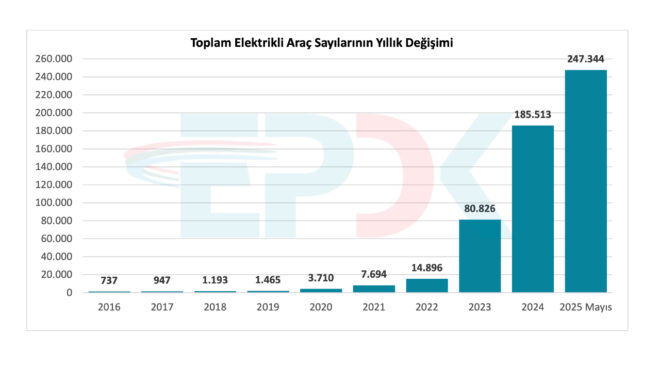 Enerji Piyasası Düzenleme Kurumu tarafından paylaşılan mayıs ayı verilerine göre Türkiye’deki elektrikli araç sayısı 247 bini geride bıraktı.